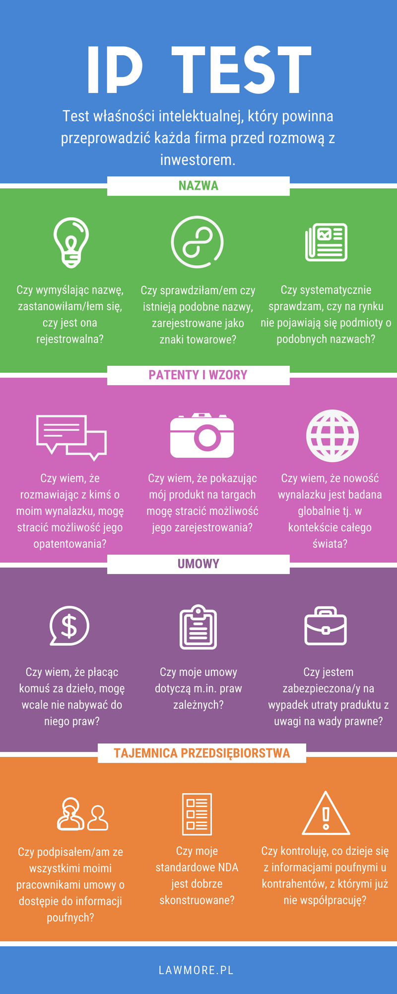 Oto przygotowaliśmy krótki test własności intelektualnej, który przedstawia najczęstsze błędy z zakresu własności intelektualnej. Warto poświęcić 5 minut na zapoznanie się z nim, w szczególności jeżeli jeszcze nie wprowadziłeś swojego produktu na rynek: